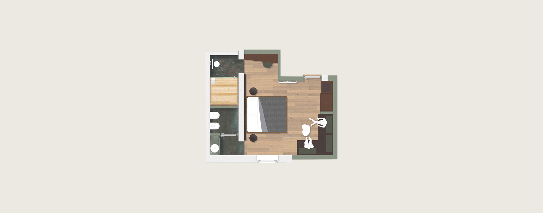 A sanctuary that warms the soul. Inspired by the element of ether, this suite embraces you with light and energy – a place where warmth meets serenity. Perfect for those seeking harmony, silence and inspiration.